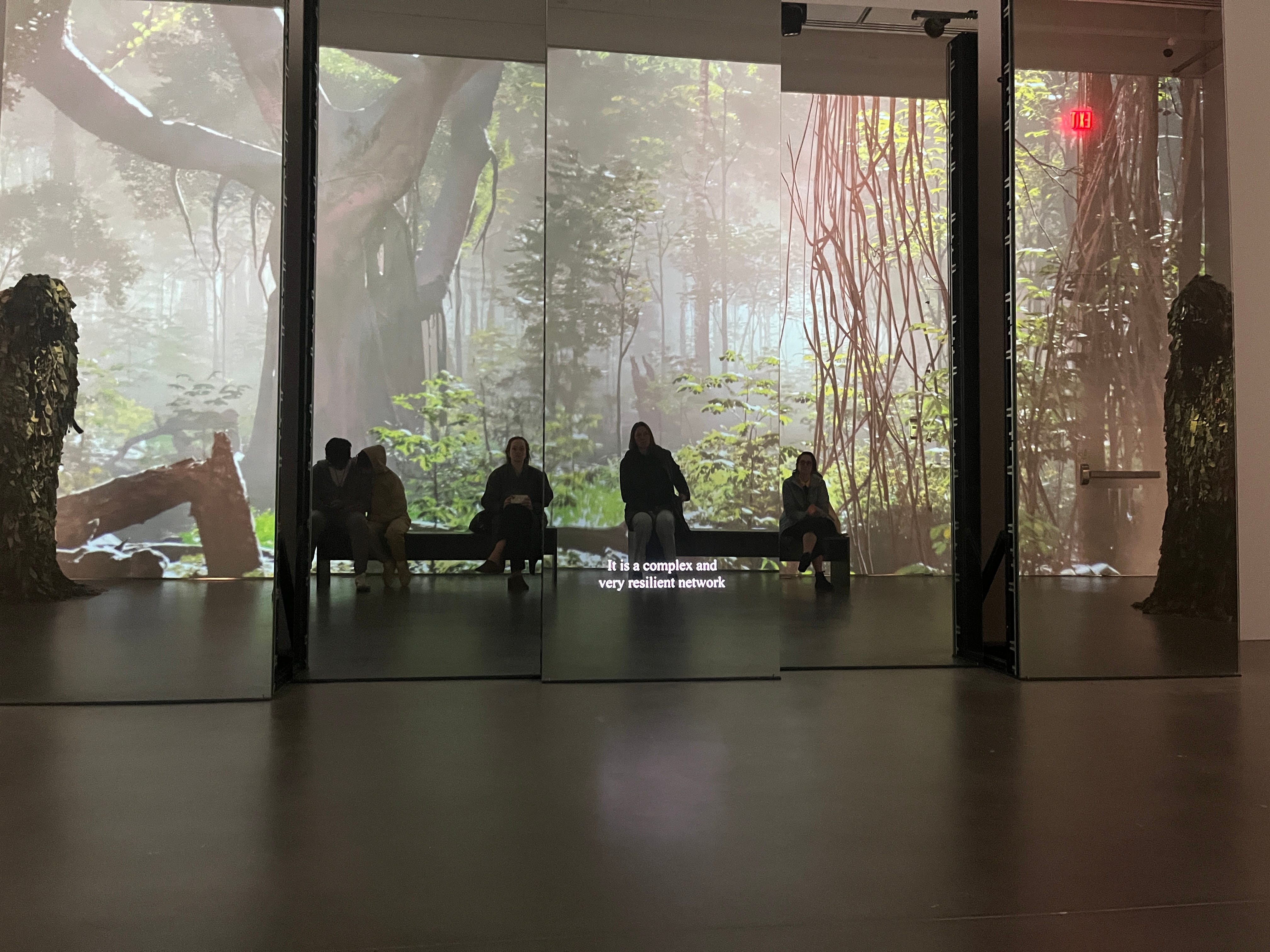 Building off of artists like Kubota using video to collaborate with other forms of art-making, this piece was particularly invitational to the audience as it is projected onto mirrored screens with sculptures around the room. The drama of the film’s pauses whether in natural landscapes or at time full blacked out screens considers the gaze of not only the filmmaker but also you watching, and, you watching yourself, in particular you watching yourself in public, being watched.