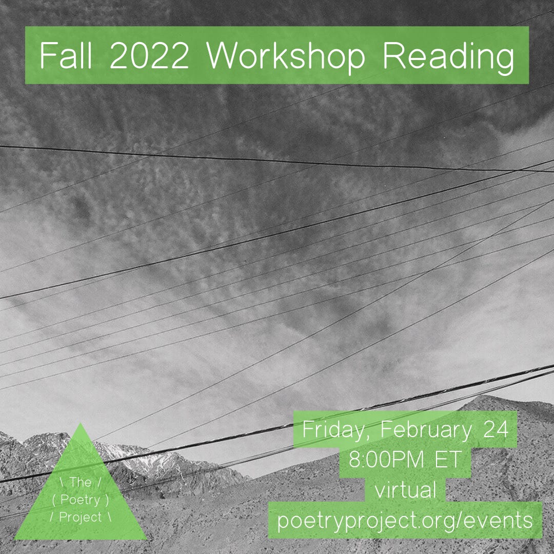 I will be reading tonight with The Poetry Project at 8p.
